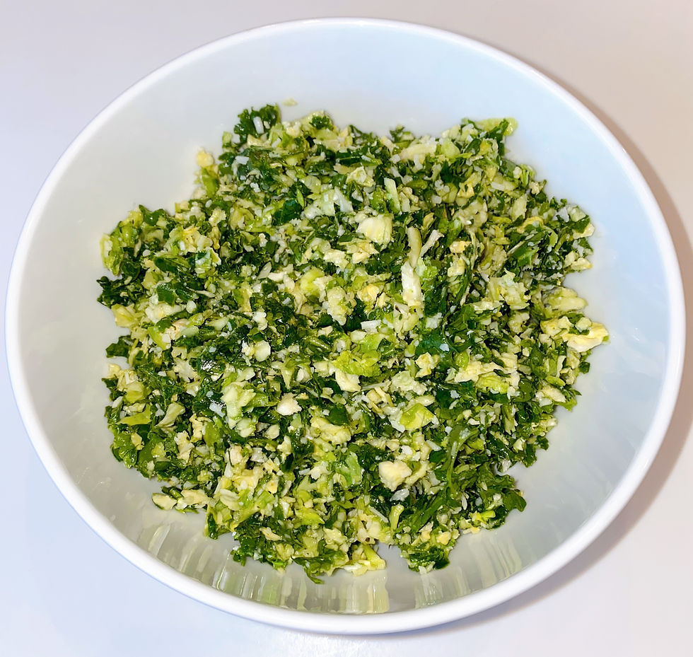 1. Grind the kale (or any other lettuce) and brussel sprouts in the food processor, or chop them super fine.